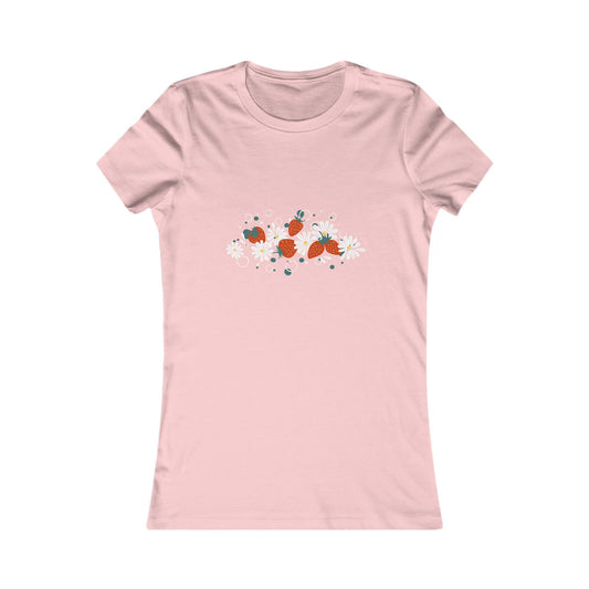 Women's Tee - Cute Strawberry and Daisy Design